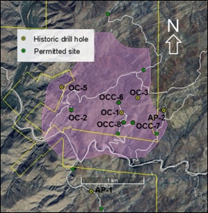 A drill hole optimization routine has identified several sets of potential exploration drill holes to test the greatest number of the models and has picked several important drill sites including in the area of historic holes OC-1, OCC-7 and OCC-8 as well as one kilometer to the west at historic hole OC-2. The Company is in the process of finalizing the drill hole selection.