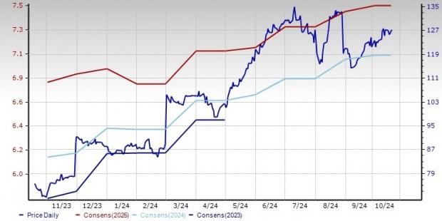 The Zacks Consensus Estimate for fiscal 2025 earnings remained up 3.4% at $7.08 per share in the past 60 days. The stock has surged 68.8% in the past year.