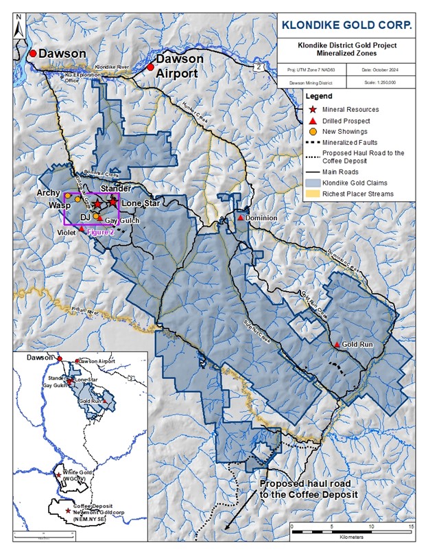 VANCOUVER, BC / ACCESSWIRE / November 5, 2024 / Klondike Gold Corp. (TSXV:KG.VN)(FRA:LBDP)(OTC-BB:KDKGF) ("Klondike Gold" or the "Company") is pleased to announce seven drill hole results which tested for southwest and northwest extensions of gold mineralization at the Stander Zone. The seven holes were planned as part of a discovery drill program adjacent to the Company's November 10, 2022 Stander Zone Mineral Resource Estimate ("MRE") 1 within the Company's 100% owned 727 km 2 Klondike District Property (the "Property") in the Dawson mining district, Yukon, Canada. (see Figure 1).