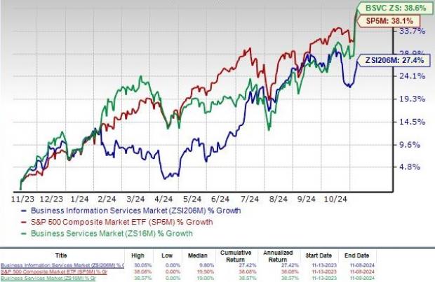 Over the past year, the Zacks Business – Information Services industry has underperformed the Zacks Business Services sector and the S&P 500 Composite.