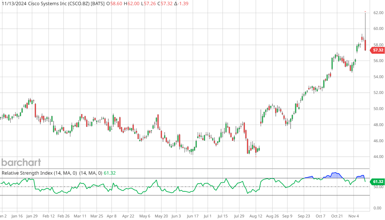 That said, a pullback in Cisco could be a buying opportunity as the company stretches its legs into AI. At 16.45x forward adjusted earnings, and with a healthy dividend yield of 2.73%, CSCO is worth considering on any dips.