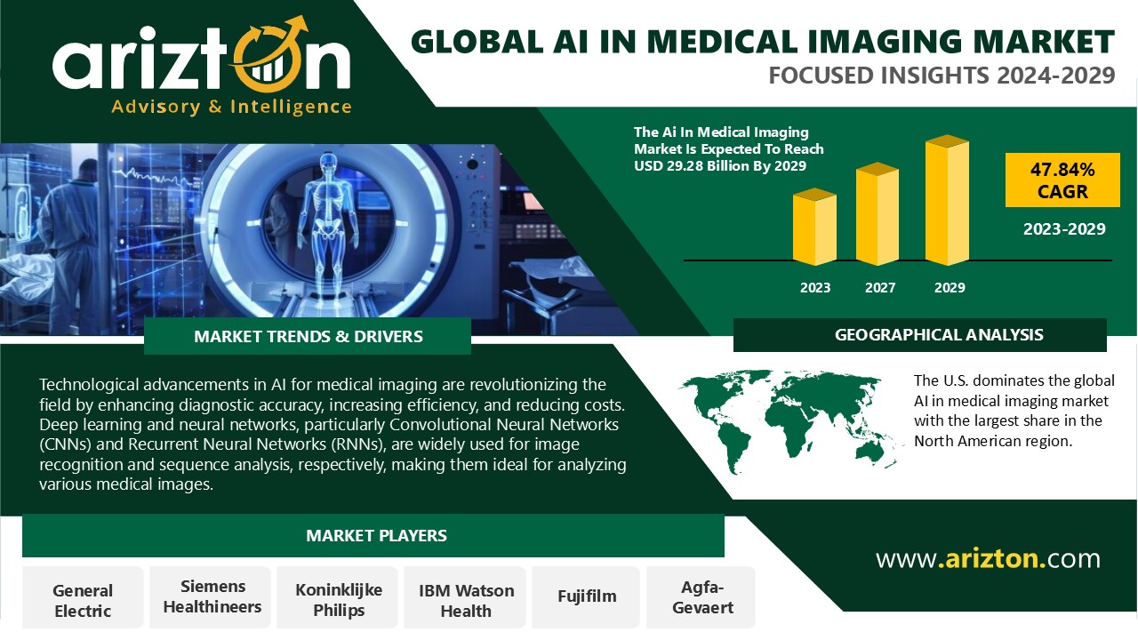 According to Arizton’s latest research report, the AI in medical imaging market is growing at a CAGR of 47.84% during 2023-2029.