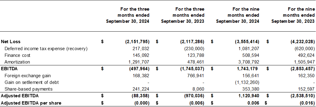 EBITDA, Adjusted EBITDA, and Adjusted EBITDA per share are non-IFRS ratios with no standardized meaning under IFRS, and therefore may not be comparable to similar measures presented by other issuers. For further information, including detailed reconciliations to the most directly comparable IFRS measures, see "Non-IFRS Measures" in this news release and the MD&A.