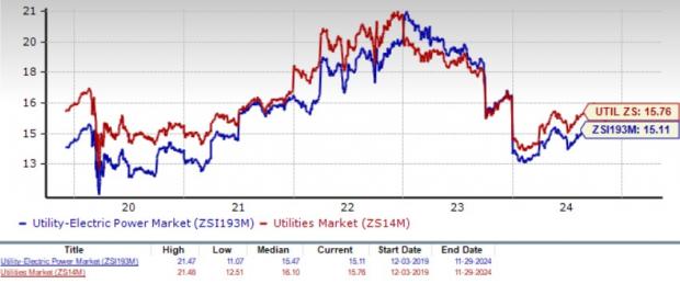 The Utility – Electric Power industry involves the generation, transmission, distribution, storage and sale of electricity to customers. A major portion of utilities’ earnings is generated from regulated operations. Unless there is any major weather variation, demand for the services provided by utilities remains steady, regardless of economic cycles. A very hot summer and cold winter season increases demand for electricity. A clear transition is evident in this industry, with more companies declaring zero-emission goals. The increasing usage of the Internet globally and an expected increase in artificial intelligence (AI) in the future will create a rise in demand for electricity. AI-based queries need substantially higher power than traditional Internet searches, music and photos. The declining interest rate is a tailwind for capital-intensive utilities.