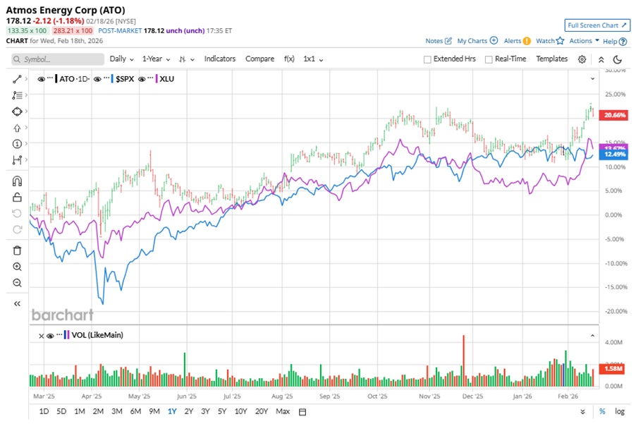 Shares of this leading natural gas utility have outperformed the broader market over the past year. ATO has gained 20.3% over this time frame, while the broader S&P 500 Index ($SPX) has rallied nearly 12.3%. In 2026, ATO stock is up 6.3%, surpassing the SPX’s marginal rise on a YTD basis.