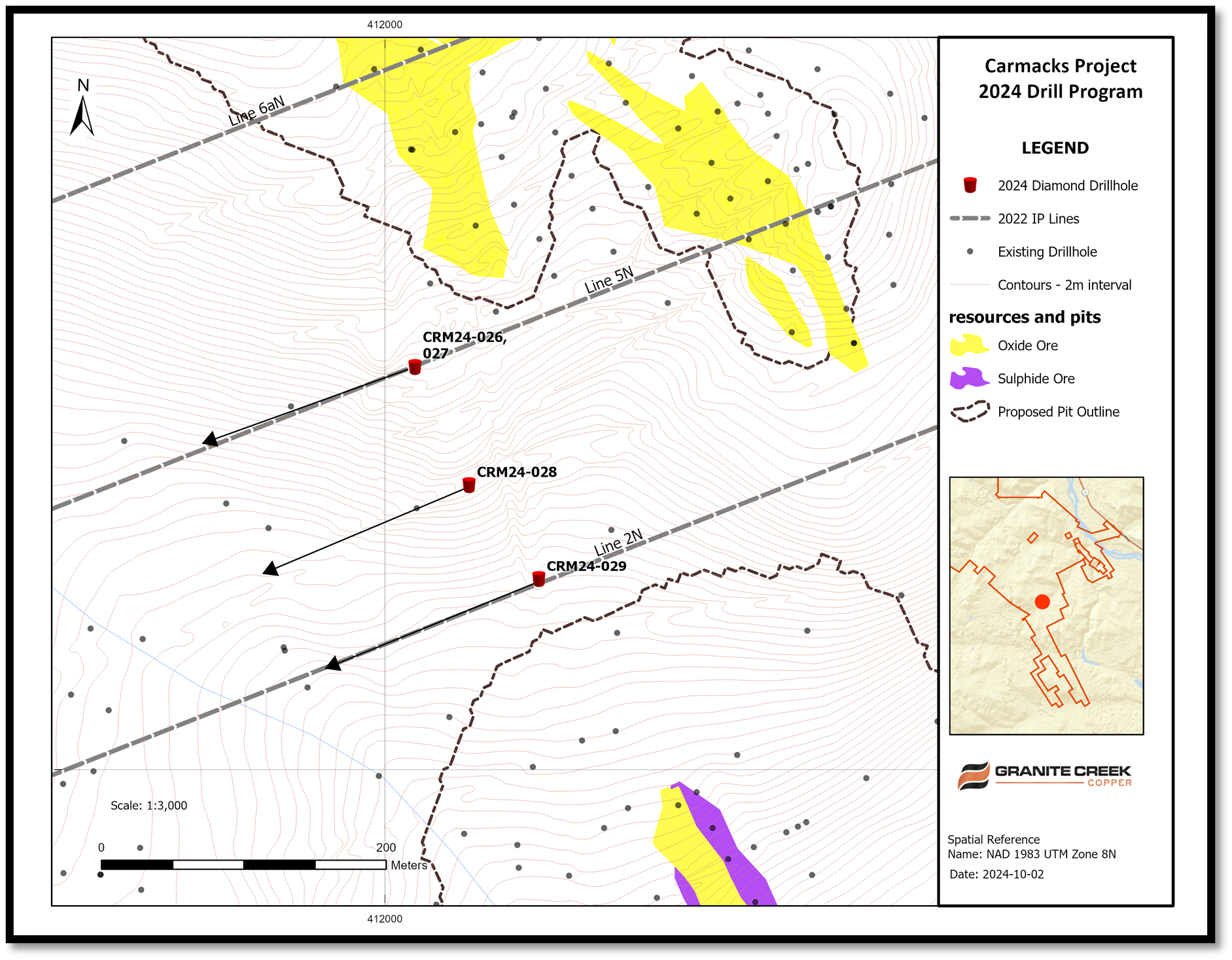 Granite Creek President and CEO, Timothy Johnson, stated, "The success of this drill program highlights the continued prospectivity of the Carmacks project. There remain multiple untested drill targets on the project, both proximal to the proposed pits as outlined int the 2023 PEA, as well as distal areas and across the northern sector which has seen only modest exploration. The project hosts significant copper-gold-silver resources and has the potential for major expansion across the 177 square kilometre land package in this top mining jurisdiction."