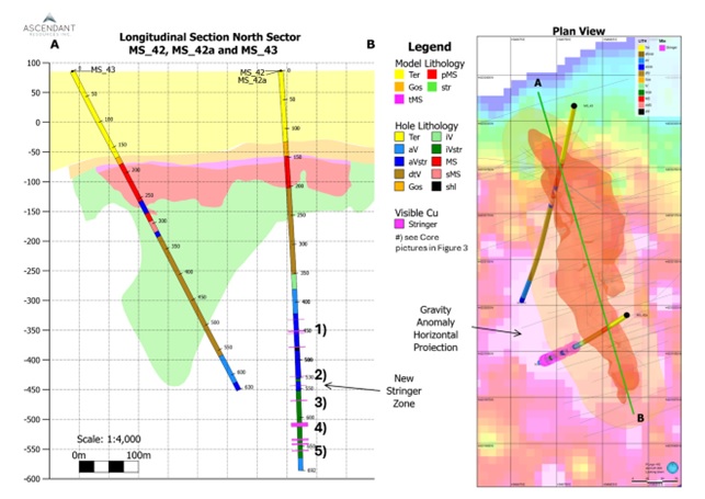In February 2024, Ascendant Resources completed a detailed gravity survey over the Venda Nova North and South Zones. This survey was instrumental in mapping the known gravity footprint of the existing Primary Massive Sulphide (PMS) deposits and identifying previously unrecognized targets. The program identified four new high priority targets for ongoing follow up and suggests the potential for significant resource growth remains at Lagoa Salgada. Refer to Press Release dated February 28, 2024, for more details [Link to Press Release].