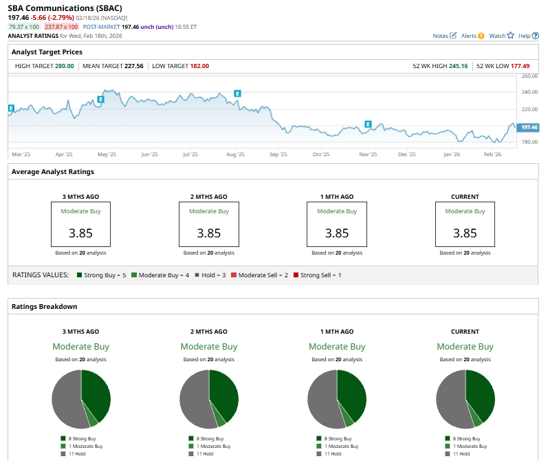 On Jan. 20, 2026, UBS analyst Batya Levi reiterated a “Buy” rating on SBA Communications but cut the price target to $260 from $275.