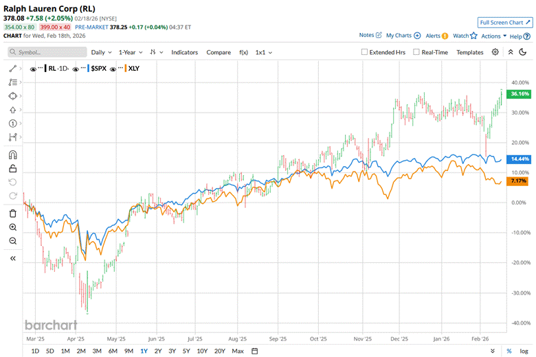 The company's shares have outperformed the broader market over the past year and in 2026. RL stock has surged 31.9% over the past 52 weeks and 6.9% on a YTD basis. In comparison, the S&P 500 Index ($SPX) has returned 12.3% over the past year and risen marginally in 2026.