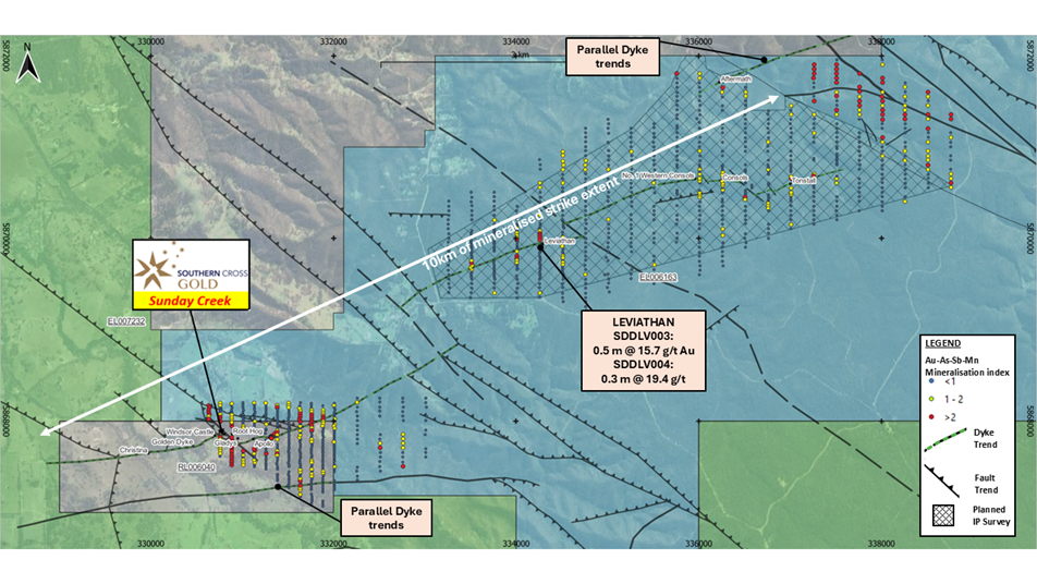 Results from drill holes SDDSC129 and SDDSC144 (Figures 1 and 2) are announced here from the Rising Sun prospect at the 100%-owned Sunday Creek Gold-Antimony Project in Victoria (Figure 4).