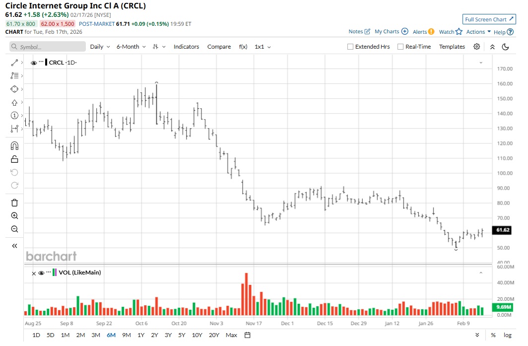 CRCL stock listed in June 2025 at $31 and subsequently surged to 52-week highs of $299. While there has been a significant correction, CRCL stock still trades 98.7% above the listing price.