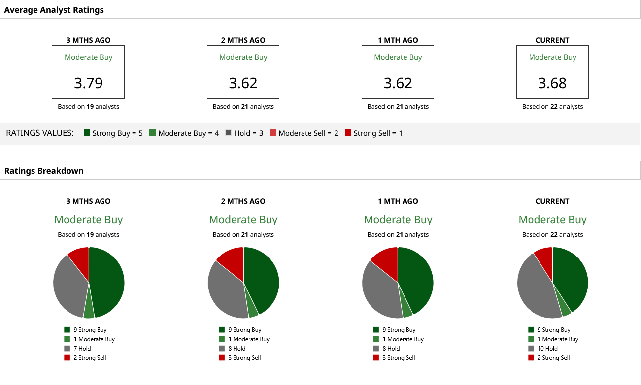 With expansion plans and a robust earnings growth outlook, CRCL stock has a “Moderate Buy” rating based on the consensus estimate of 22 analysts. Further, a mean price target of $126.94 implies an upside potential of 106%.