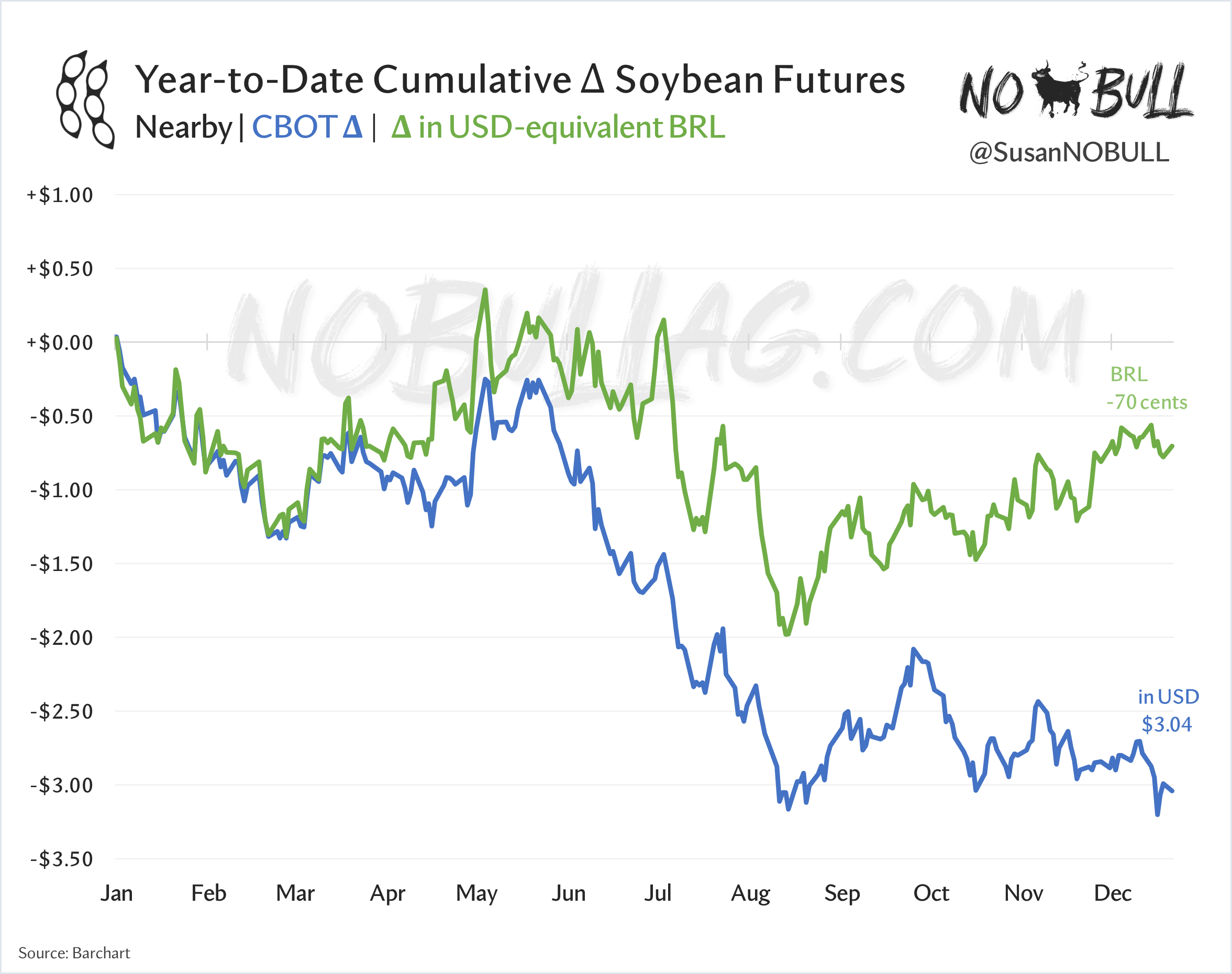Aside from Washington's surprise $10B in mailbox money, the U.S. farmer is getting a big ole lump of coal this Christmas with front-month soybean futures down $3 year-to-date.