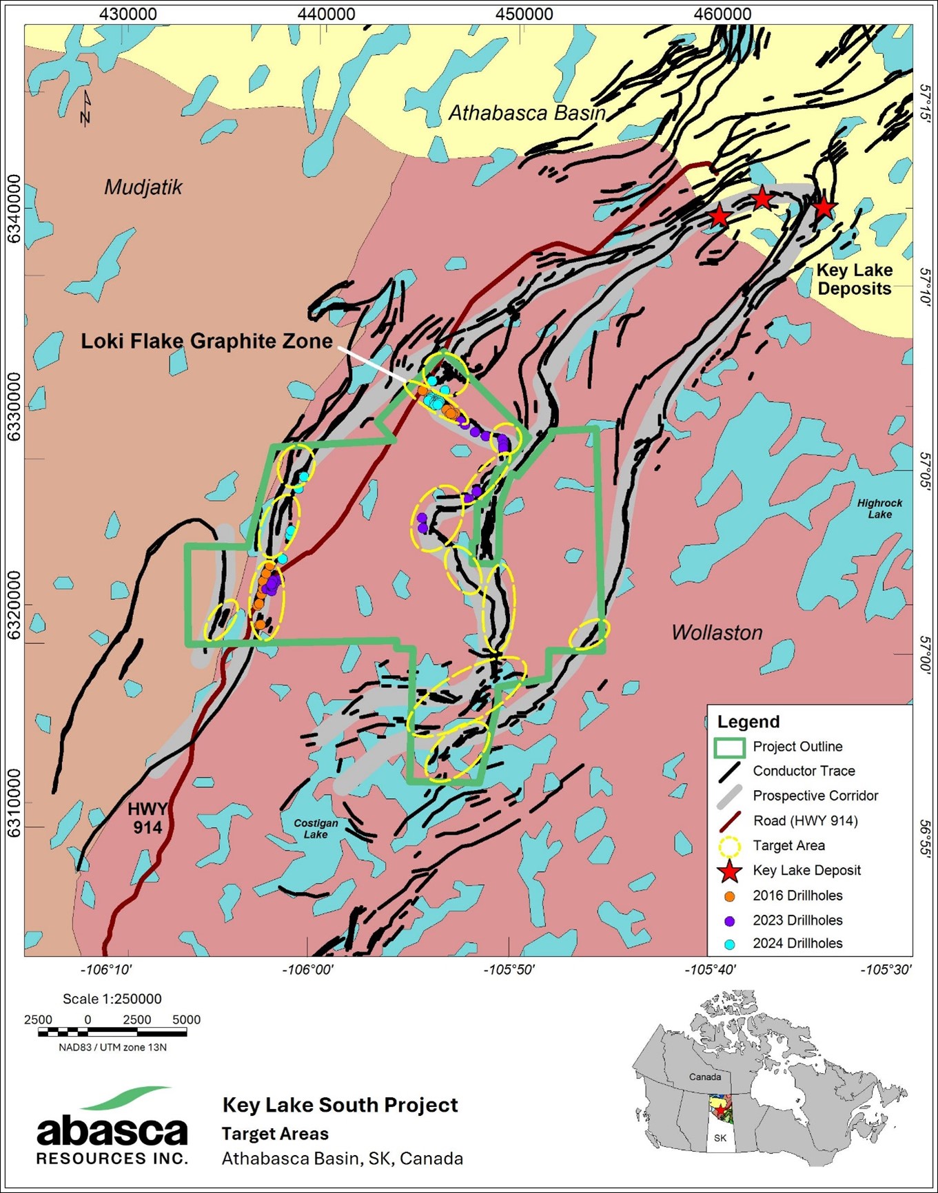 SASKATOON, SK / ACCESSWIRE / December 30, 2024 / Abasca Resources Inc. ("Abasca" or the "Company") (TSXV:ABA.VN) is pleased to announce that it has engaged an independent mineral resource consulting firm, Understood Mineral Resources Ltd. ("UMR"), to complete a flake graphite resource estimate of its Loki Flake Graphite Zone ("Loki Zone") on its 100%-owned Key Lake South (KLS) Project (Figure 1). UMR has extensive experience in modeling structurally-controlled resources that are supported and guided by geostatistical analyses.
