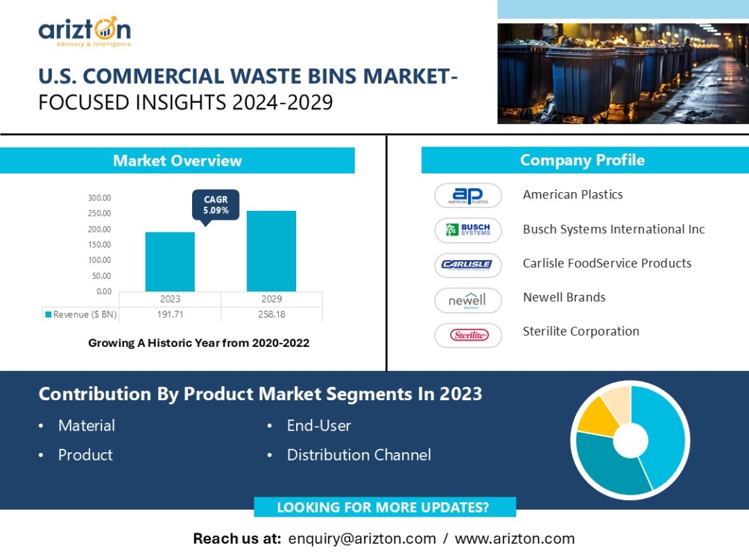 To view the original version on ABNewswire visit: The US Commercial Waste Bins Market is Projected to Reach $258.18 Million by 2029, Supermarkets and Hypermarkets to Lead the Charge - Arizton