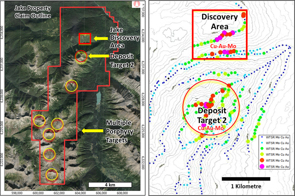 Company also acquires additional mineral claims surrounding Jake, hosting an entire new potential copper-gold porphyry district