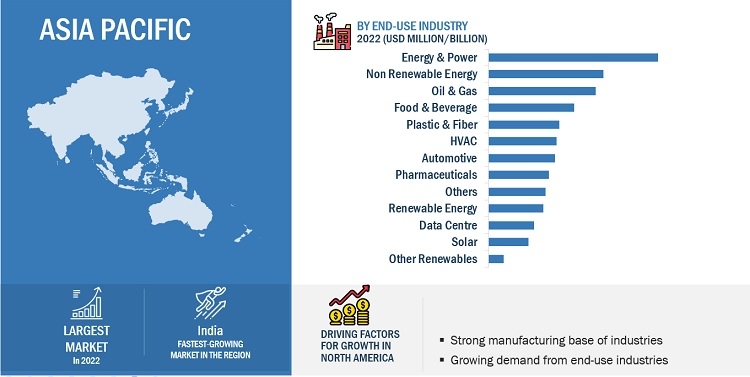 The Asia Pacific region's availability of low-cost raw materials and labor has attracted foreign manufacturers to establish their manufacturing plants, and government initiatives against global warming will boost the thermal management solutions market in the region. Additionally, the rising application of thermal management solutions in industries such as Energy & Power, Oil & Gas, Plastic & Fiber, Petrochemical & Chemical, and HVAC will further drive the thermal management solutions market. The region's low living standards and low disposable income of the people may lead to price reductions of thermal management solutions.