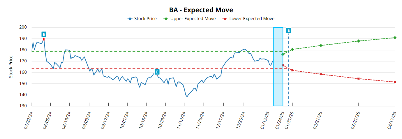 Beaten-down aerospace giant Boeing Company (BA) is set to report quarterly earnings before the market opens on Tuesday, Jan. 28, and options traders are expecting a bigger-than-usual post-event move in the stock. Currently, BA options are pricing in a 5.44% move after earnings, compared to the average realized move of 4.09% over the past four quarters.
