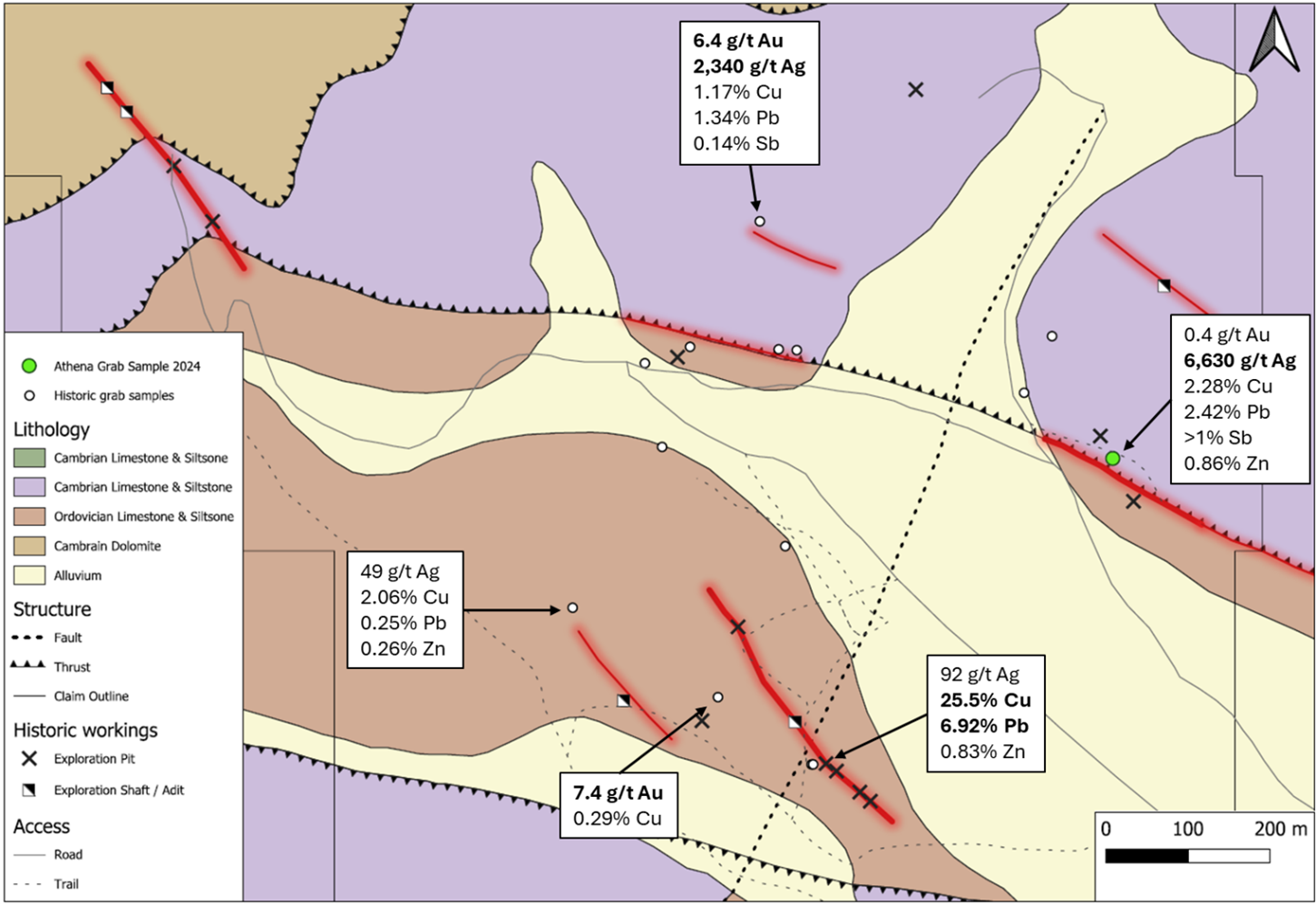 "Since closing our financing, the team has wasted no time diving deep into Excelsior Springs and ground-truthing the newly acquired Blue Dick claims. The 6,630 g/t Ag sample, which exceeds all known historical silver sample grades at Excelsior, confirms the area's high-grade nature of silver mineralization. Importantly, to our knowledge, this target area has never been drill tested, presenting a major blue-sky opportunity for Athena. We plan to return to this area in short order," stated John Power, President and CEO of Athena Gold.