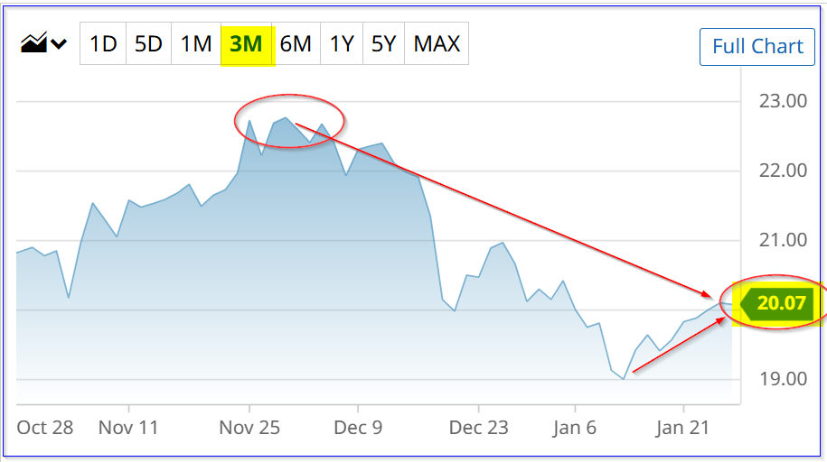 But so what? After all, the effective breakeven is lower at $20.00 - $0.55, or $19.45. That is over 3% lower than today's price and effectively is a good way to set a lower buy-in price target.