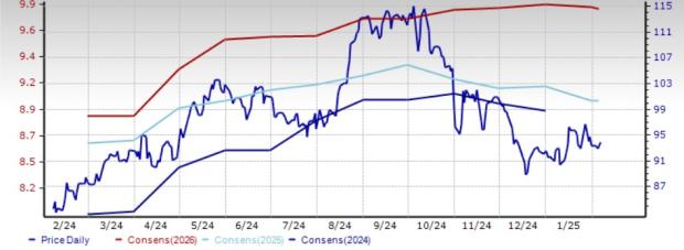 Catastrophe loss induces volatility in underwriting profits: The property and casualty insurance industry is susceptible to catastrophe events, which drag down underwriting profits. Per a Colorado State University (CSU) report, 2024 had a very active hurricane season. Gallagher Re Natural Catastrophe and Climate Report 2024 stated global insured losses were $154 billion in 2024 due to catastrophes. Analysts at Wells Fargo Securities estimate losses from the recent California wildfire to be between $20 billion and $40 billion, largely affecting homeowners' insurance. Swiss Re estimates the combined ratio to improve from 2023 to 98.5% in 2025. Underwriting profitability is expected to be under pressure, primarily due to soft performance in personal lines, which are expected to witness higher catastrophe losses per Insurance Information Institute and Milliman but profitability in 2025. Exposure growth, better pricing, prudent underwriting and favorable reserve development will help withstand the blow. Also, frequent occurrences of natural disasters should accelerate the policy renewal rate.