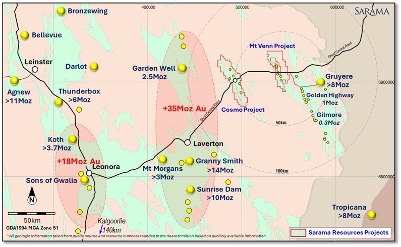 "We are very pleased to get exploration underway and bring the belt-scale Cosmo Project to account. Cosmo is genuinely underexplored, has all the geological ingredients to generate a discovery and with core team members that led the discovery of the multi-million ounce Moto and Sanutura(6) Projects in Africa, we look forward to seeing what this project can deliver. Leveraging its position at the Cosmo Project, upon completion of the transaction to acquire a majority interest in the nearby Mt Venn Project, Sarama will have 1,000km2 of highly prospective ground in the prolific Laverton Gold District."
