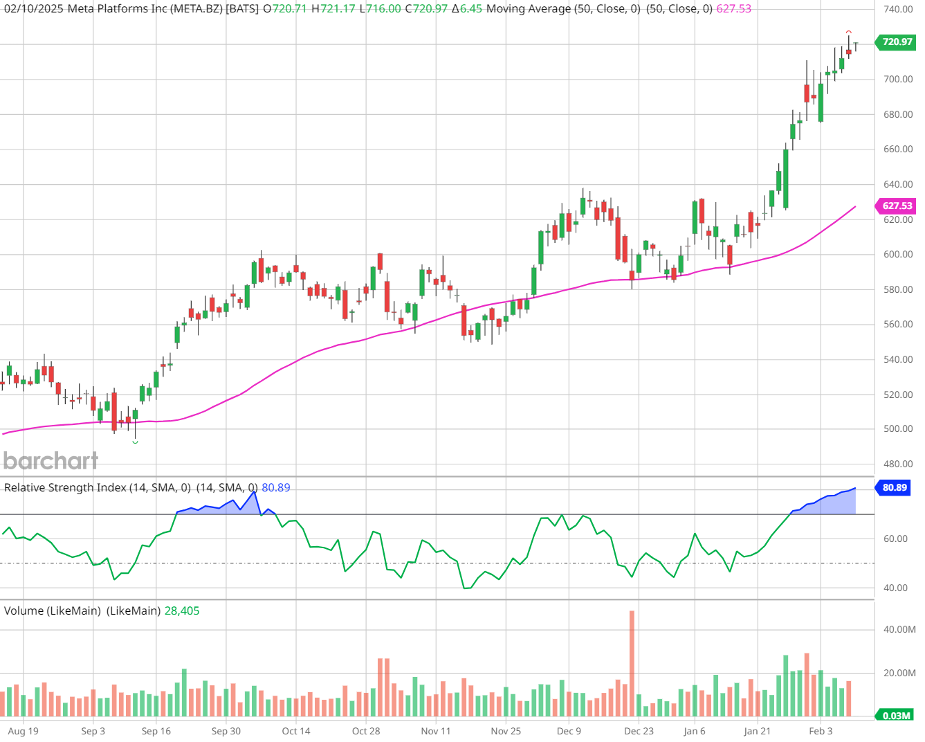 However, with META trading just 3% away from its average 12-month price target of $736.60, some caution is advised - particularly given the company's already massive market cap, and potential future competition that could challenge its dominance. Plus, based on its current 14-day Relative Strength Index (RSI) north of 80, META stock is currently more overbought now than it’s been in a year.