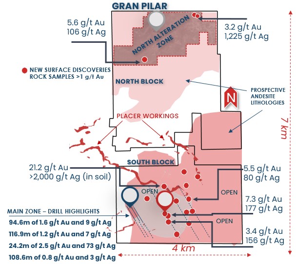 Figure 2. Gran Pilar Project Overview, > 22km2 of prospective ground.