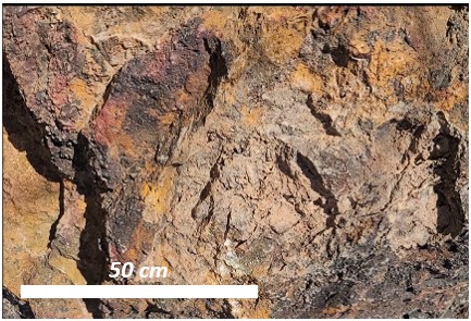 Figure 1. (Above) Western side of Gran Pilar Southern Block. Target map with recently completed drillholes. Unsampled silicified breccia and coincident soil anomaly, one-kilometer north of Main Zone. Photo 1. (Below) Outcrop of silicified breccia identified within soil anomaly as noted above.