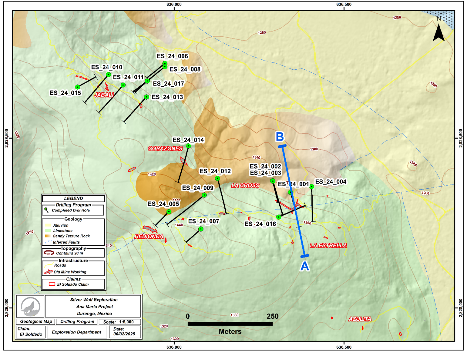 VANCOUVER, BC / ACCESS Newswire / February 18, 2025 / Silver Wolf Exploration Ltd. (TSXV:SWLF.VN)(OTC-BB:SWLFF) ("Silver Wolf" or the "Company") is pleased to announce the results of its inaugural drill program on the El Soldado Claim at the Ana Maria Project.