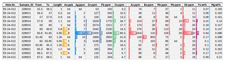 Table 2: Geochemical results for select intervals of diamond drillhole ES-24-12