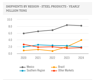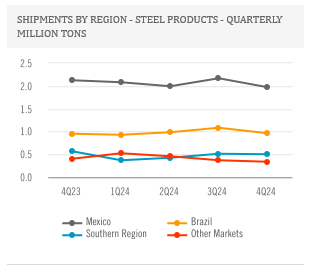 In the Southern Region, steel sales volumes in the fourth quarter of 2024 reflected a seasonal demand decline in Argentina. For the full year 2024, the company experienced a 20% decrease in steel shipments in the Southern Region primarily in connection with the Argentine government's economic stabilization measures, which had a significant impact in the first quarter followed by a gradual improvement throughout the year.