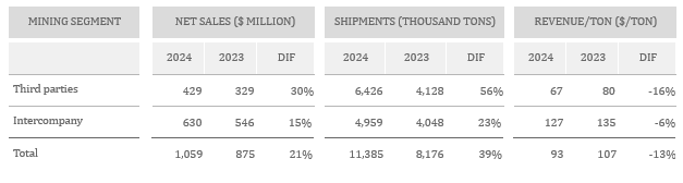 Mining Segment Full Year of 2024 Shipments and Net Sales
