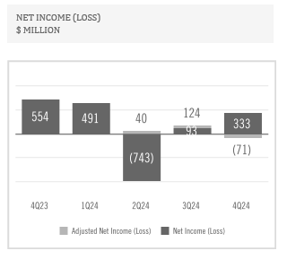 Ternium's net income totaled $333 million in the fourth quarter of 2024. The company recorded a $404 million provision reversal for ongoing litigation related to the acquisition of a participation in Usiminas in 2012. Excluding this provision reversal, Adjusted Net Loss was $71 million. For the full year 2024, Ternium's net income totaled $174 million. During the year, the company recorded a net $410 million provision for the aforementioned litigation. Excluding this provision, Adjusted Net Income for 2024 was $584 million.