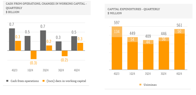 Net financial results showed a loss of $67 million in the fourth quarter of 2024. In this period, Ternium reported a $72 million net foreign exchange loss, primarily due to the adverse effect of the Brazilian Real's depreciation against the US dollar on Usiminas' US dollar denominated liabilities, given that Usiminas uses the Brazilian Real as its functional currency.