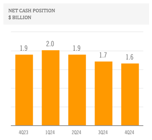 Note: Ternium Argentina's consolidated position of cash and cash equivalents and other investments amounted to $1.3 billion as of December 31, 2024, $1.2 billion as of September 30, 2024, and $1.1 billion as of December 31, 2023.