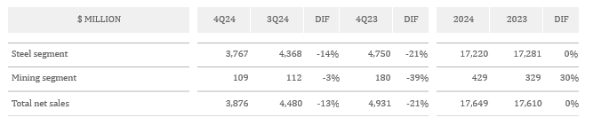 Steel Segment Fourth Quarter of 2024 Results