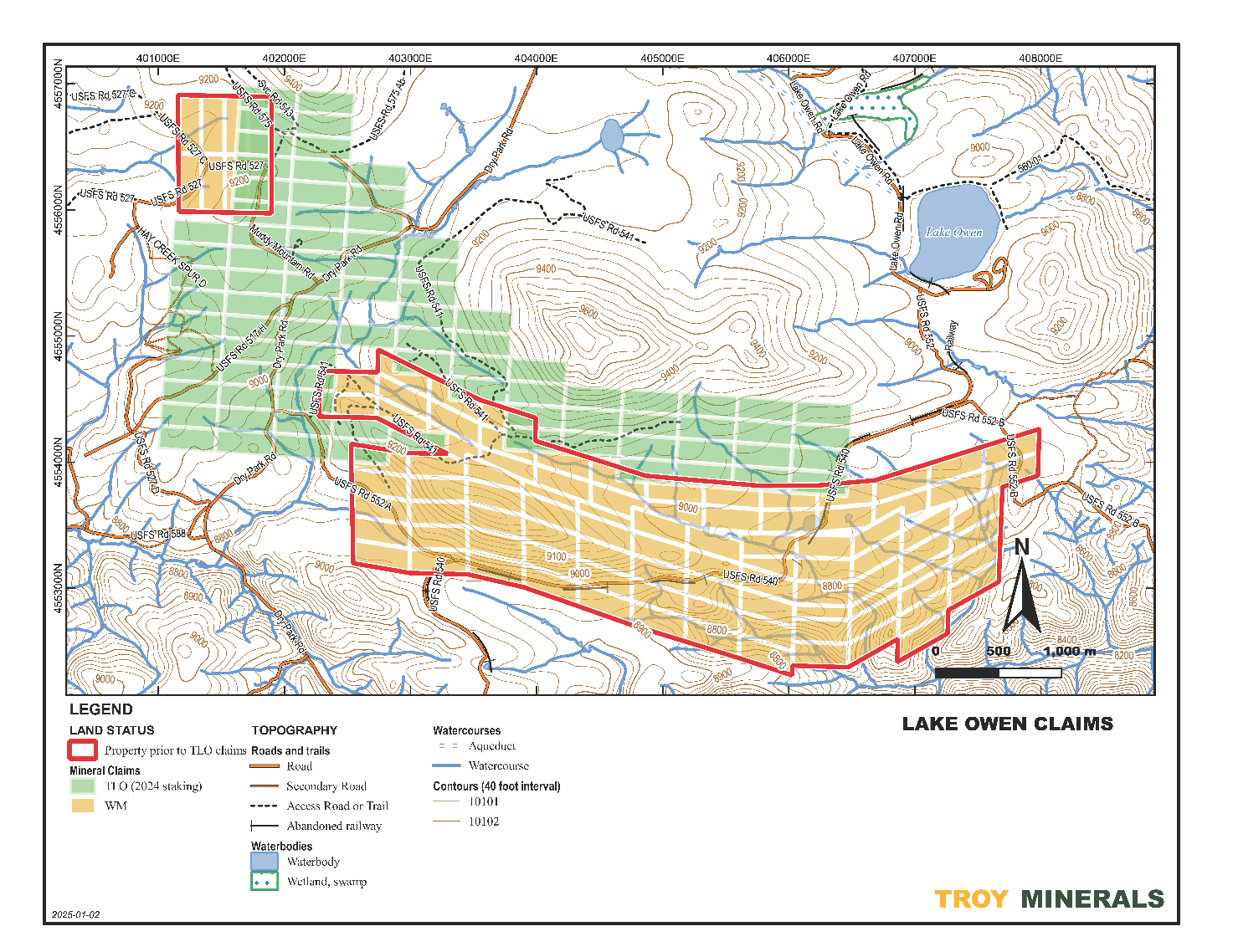 VANCOUVER, BC / ACCESS Newswire / February 20, 2025 / Troy Minerals Inc. ("Troy" or the "Company") (CNSX:TROY.CN)(OTC-BB:TROYF)(FSE:VJ3) is pleased to announce the strategic expansion of its Lake Owen Project, located 50km southwest of Laramie, Wyoming, USA (the "Property") by adding a significant number of neighboring claims. The new Claims staking process followed the conclusion of the Company's first phase geological program that took place in H2 2024. The exploration program consisted of first pass geological mapping, diamond drilling and sampling. Results of this program will be reported in due course.