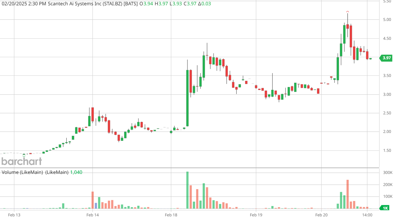 Notably, the equipment is being loaned to VADOC at no cost, with no obligation to purchase after the six-month pilot period expires. However, investors seem to think this is a clutch opportunity, and they’ve been flocking to STAI stock in big numbers.