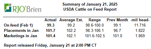 USDA released its February Cattle-on-Feed report after the close on Friday at 2 PM. Estimates for on-feed were 99.3 percent of last year and came in at 99.2 percent and so in line with trade expectations. Placements came in at 101.7 percent of last year versus trade expectations of 102.2 percent and so lower than anticipated, largely impacted by the prior close of the Mexican border. Marketings came in at 101.4 percent versus 102.1 percent expected and so lower than expected. While the placement number had a bullish tilt, the lower marketings were less desirable.
