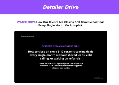 Detailer Drive provides high-quality and highly intentful leads to help North American detailers acquire jobs on demand. Detailer Drive uses cutting-edge, highly optimized, and highly tested digital marketing strategies to drive traffic to their qualification funnels for leads to convert into appointments that get booked directly into the detailers calendars on autopilot. Add 15-30 extra ceramic coatings to the bottom line every single month on autopilot on a zero-risk basis while saving more time to do more outside of detailing with Detailer Drive.