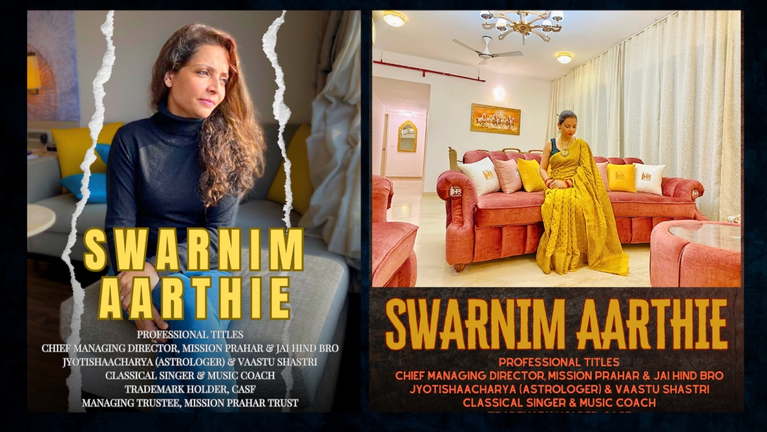Swarnim Aarthie is a renowned entrepreneur, astrologer, Vaastu Shastri, and classical music coach. She plays a crucial role in women’s empowerment and self-defense training through her leadership in Grandmaster Shifuji’s Mission Prahar Education and Training Pvt. Ltd. She is also the driving force behind Jai Hind Bro, a patriotic-themed clothing and lifestyle brand.