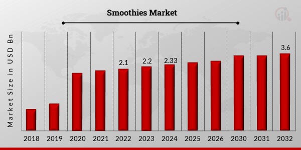 The global smoothies market has experienced significant growth in recent years, driven by a surge in health consciousness and the demand for convenient, nutritious beverage options. Valued at USD 2.2 billion in 2023, the industry is projected to reach USD 3.6 billion by 2032, with a compound annual growth rate (CAGR) of 5.54% during the forecast period from 2024 to 2032.