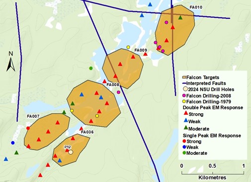North Shore will continue prioritizing targets at Falcon in pursuit of maximizing the chances of encountering economic uranium mineralization in its next drill program. As currently planned, that drill program would initially focus on several targets in the South Priority Area of Zone 1 and the South Walker Area of Zone 2. EMIT Maxwell software was used to create subsurface models of interpreted conductors from priority areas in Zones 1 and 2 to optimize placement of drill collars. Additional updates on the Company's target prioritization efforts will be provided on an ongoing basis.