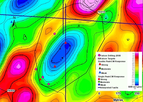 Figure 1: Map showing Falcon exploration targets and priority zones.