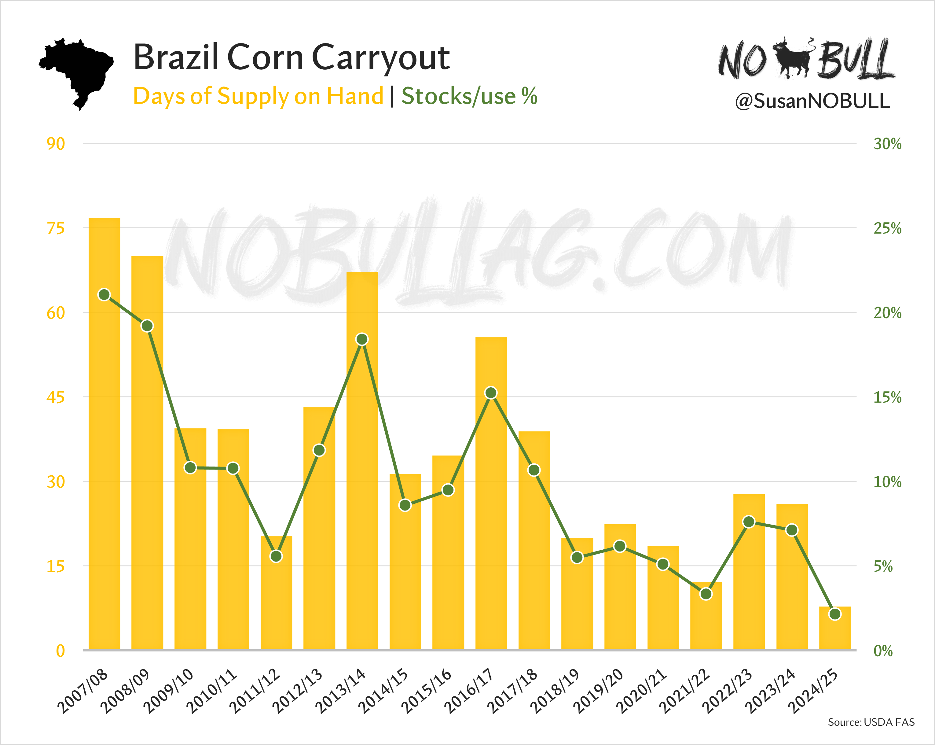 Brazil's tight stocks situation is why so much emphasis has been put on the success of Brazil’s Safrinha (second) corn crop in 2025.