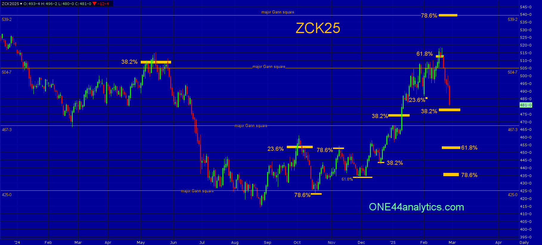 Below it, the short term target is 38.2% back to the 8/26/24 low at 478.00, this is now the long term swing point, holding it can send quickly to a new high. With it hitting the 61.8% level at 512.00 the longer term target will be 61.8% the other way at 454.00 per the ONE44 61.8% rule.