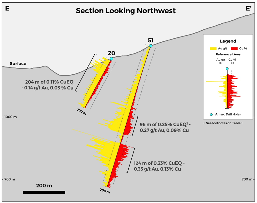 Collectively, the 20 initial AuRORA holes have advanced Amarc's objective to drill systematic step outs to outline an outstanding Cu-Au-Ag deposit. The Company was unable to complete additional drilling along the four sections described in this release due to the required demobilization when the camp housing the Amarc crew closed for the season.