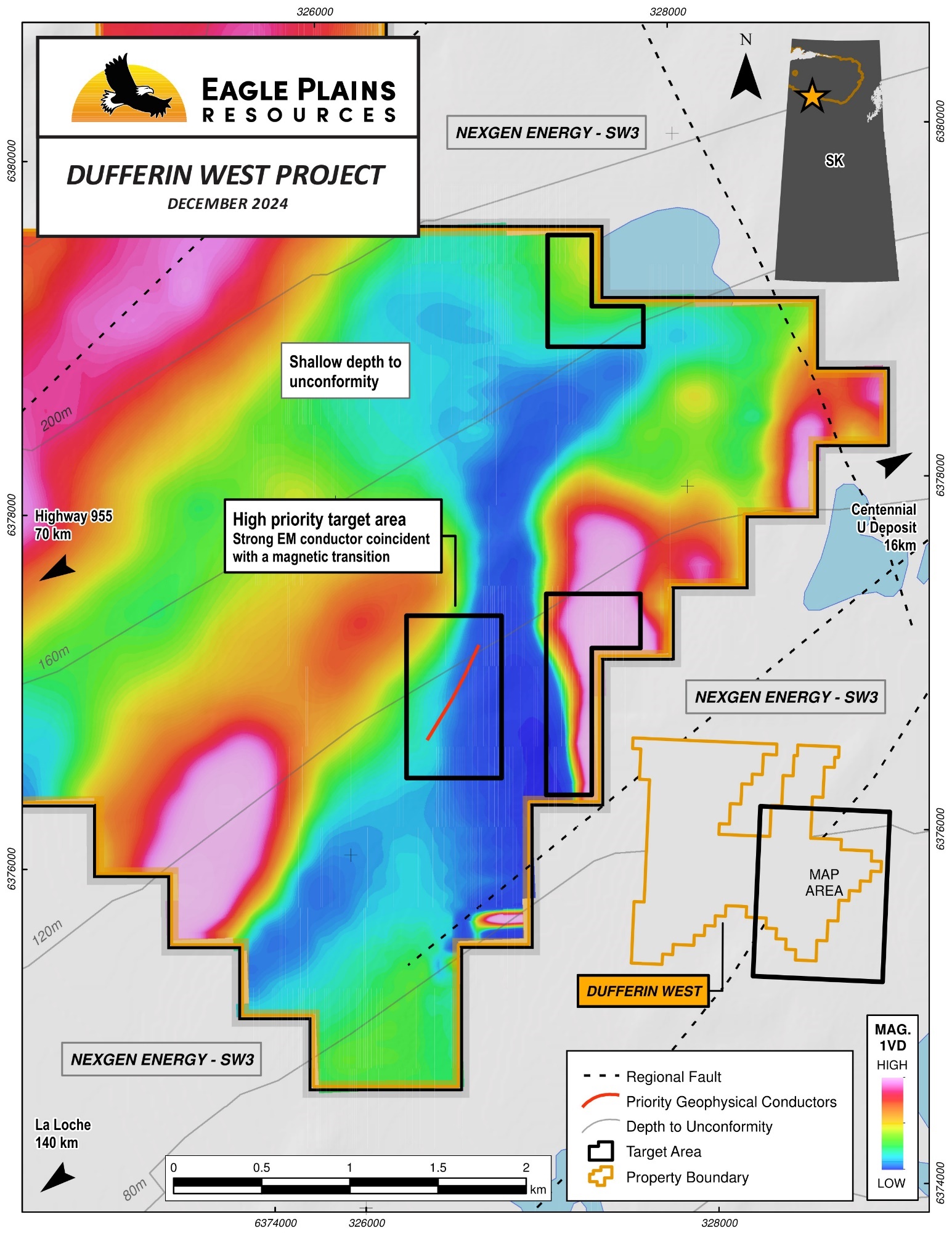 CRANBROOK, BC / ACCESS Newswire / March 3, 2025 / Eagle Plains Resources Ltd. (TSXV:EPL.VN), or ("Eagle Plains") is pleased to announce that it has received a permit for work, including diamond drilling, at Eagle Plains' 100% owned Dufferin West Property, from the Saskatchewan Ministry of Environment. Partner Refined Energy Corp (CNSX:RUU.CN)(OTC:RFMCF)(FRA:CWA0) ("Refined"))is focused on advancing three priority target areas as described in the January 7, 2025 news release. A drill program is being planned for the highest priority targets.