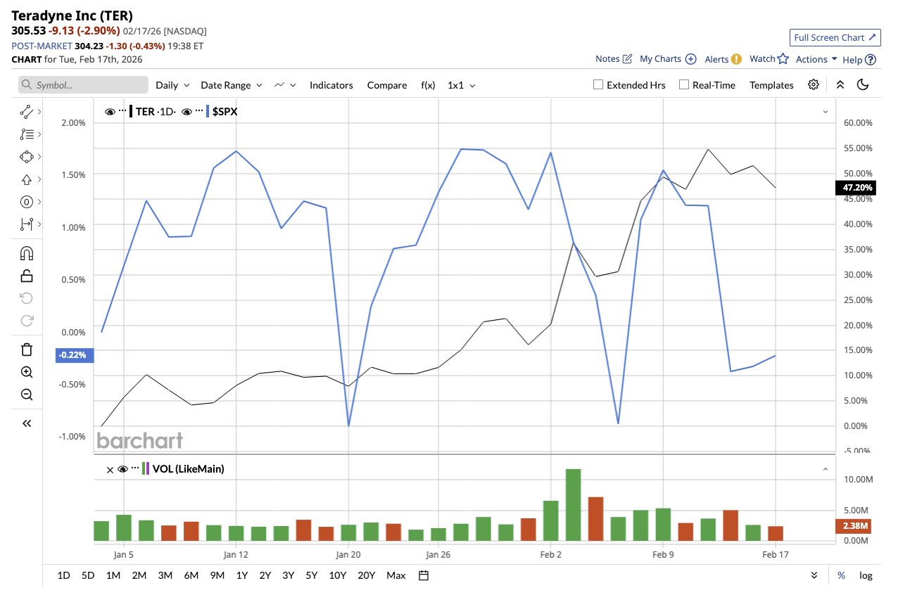Teradyne shares are up 62% so far this year, outperforming the broader market.